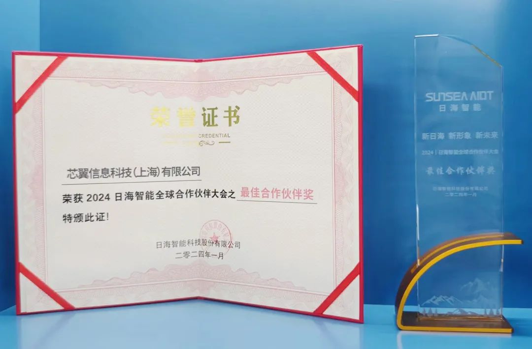 本次大会设立了年度合作伙伴颁奖仪式,向与日海智能合作过程中作出突出贡献的合作伙伴们颁发了荣誉证书和奖杯,芯翼信息科技作为重要合作伙伴之一荣获此奖项。未来芯翼信息科技也将与日海智能及更多的合作伙伴携手共进,砥砺前行,共创物联网行业美好的未来。